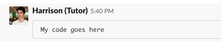 As we progress in the semester you will probably be using slack more as you ask tutors or your peers for help with programming. Here are some best practice guidelines for asking for help. There are two methods for sending code in Slack.
